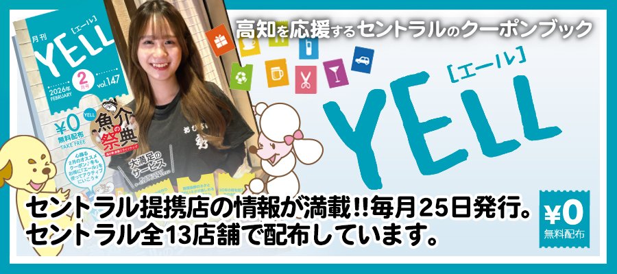 提携店様にはこのクーポンブックを活用して頂いてお店の活性化をはかってもらい、クーポンご利用のお客様には嬉しいサービスを活用して頂いてセントラルはその橋渡しをする事で地元高知に「エール」を送りこれからも貢献していきたいと考えています。
