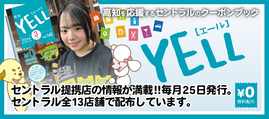 提携店様にはこのクーポンブックを活用して頂いてお店の活性化をはかってもらい、クーポンご利用のお客様には嬉しいサービスを活用して頂いてセントラルはその橋渡しをする事で地元高知に「エール」を送りこれからも貢献していきたいと考えています。